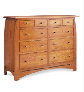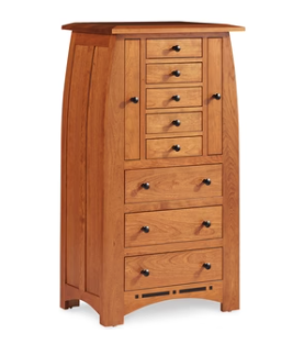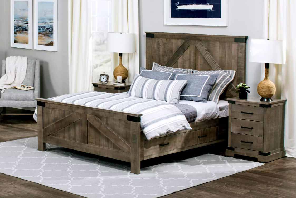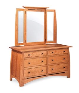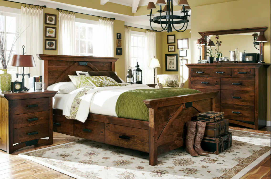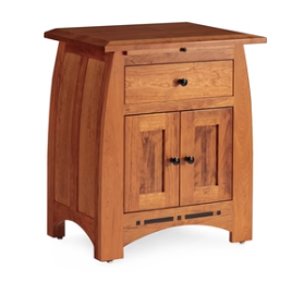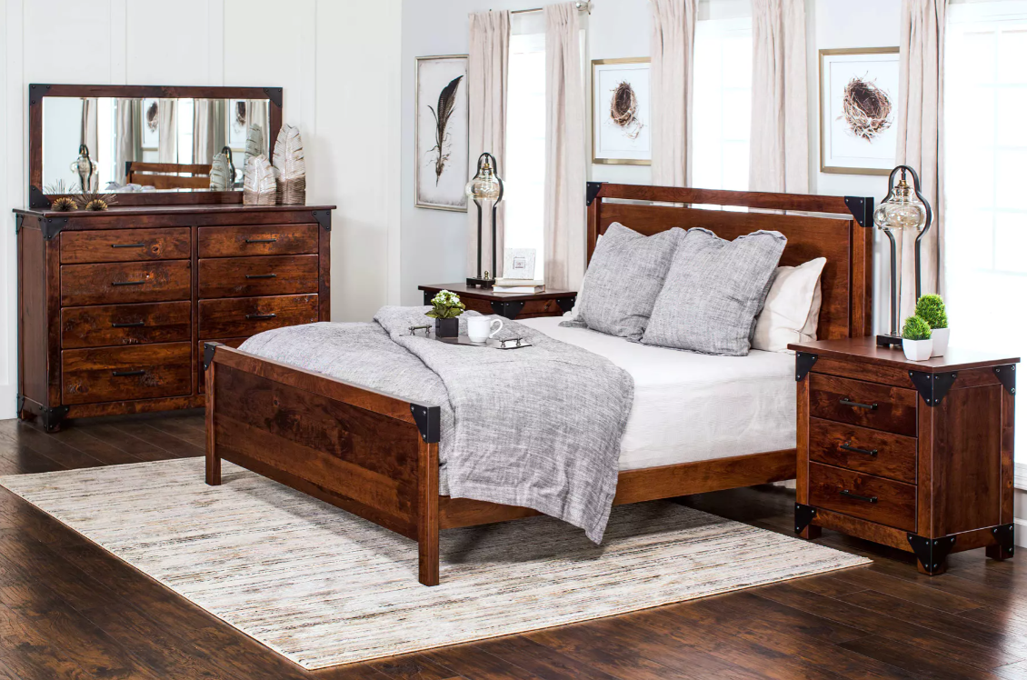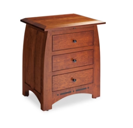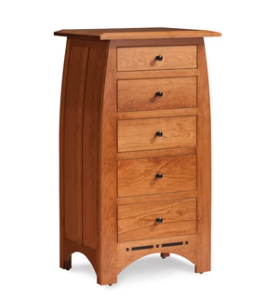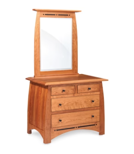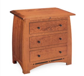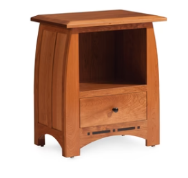 The Aspen Collection provides a rustic interpretation of the Arts & Crafts style. This beautiful collection features clean lines and gentle curves. A unique handcrafted black epoxy inlay is standard on each piece. The beds in this collection have the option to add storage drawers beneath. This collection is shown in cherry wood.