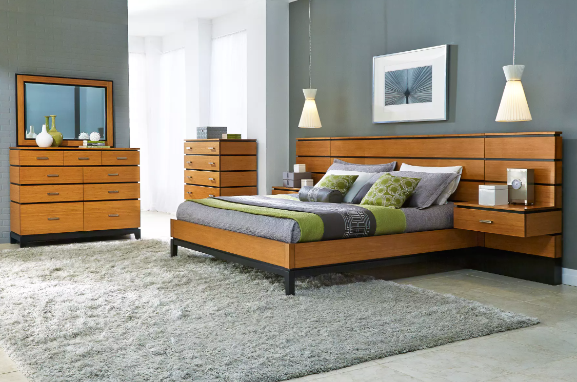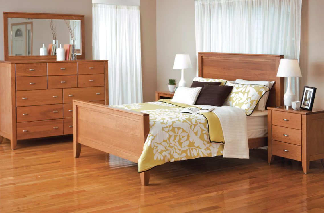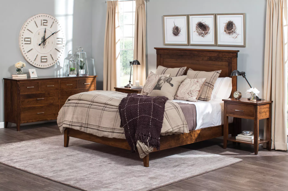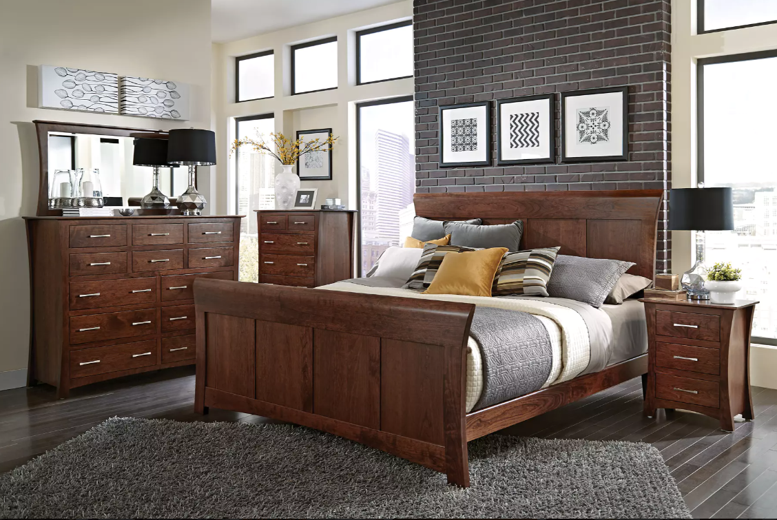 The Garrett Collection features a Transitional style. The gentle curves on the sides of each piece soften the typical modern aesthetic of straight lines. The beds in this collection have the option to add storage drawers beneath. This collection is shown in cherry wood.