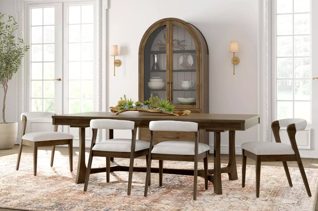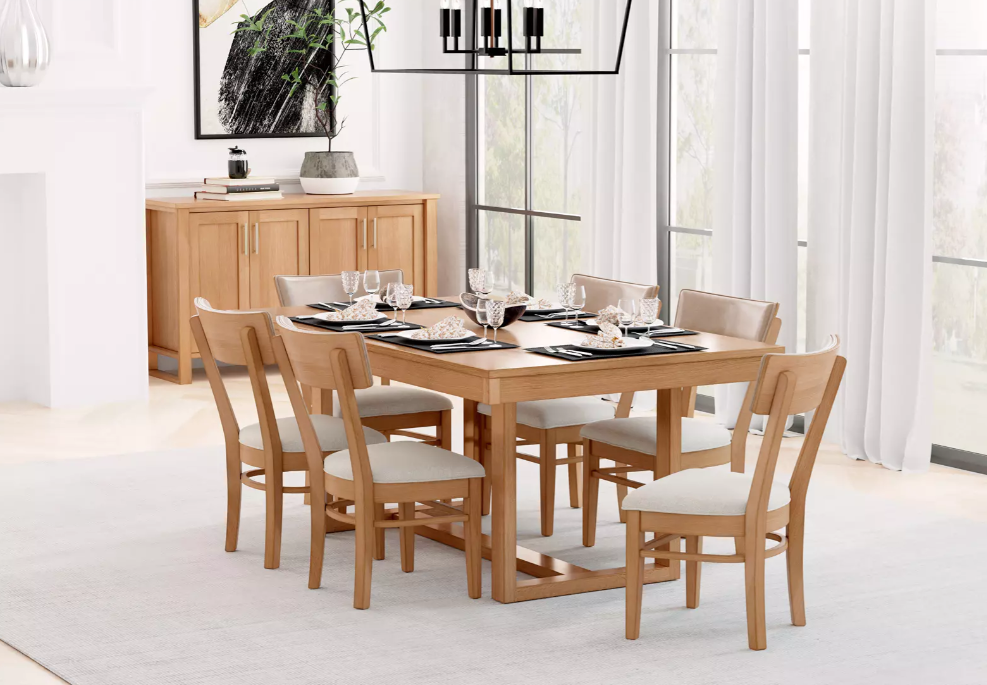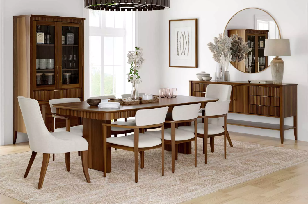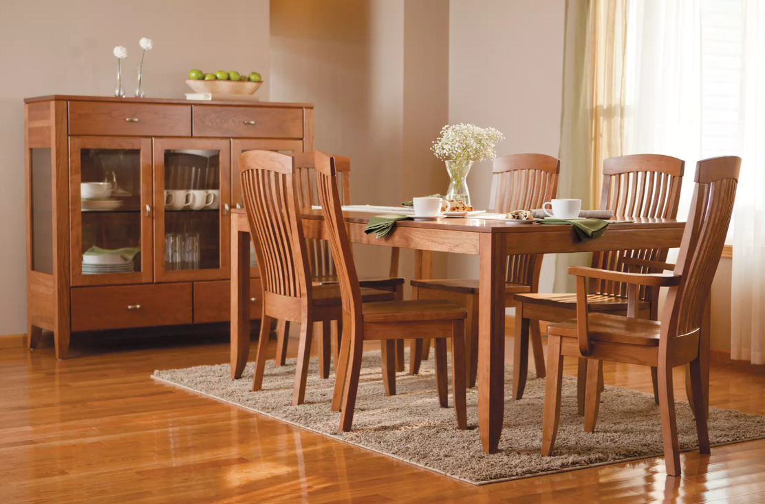 With clean lines and refined proportions, the Elroy Dining set is ideal for stylish entertaining. Crafted from cherry wood and finished to highlight its natural beauty, each piece complements a variety of interior styles.